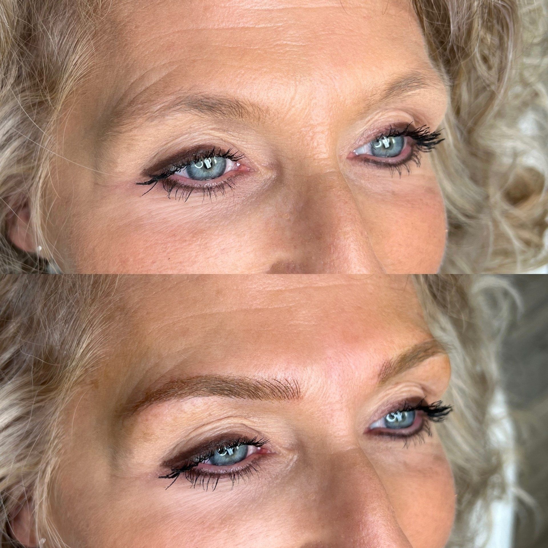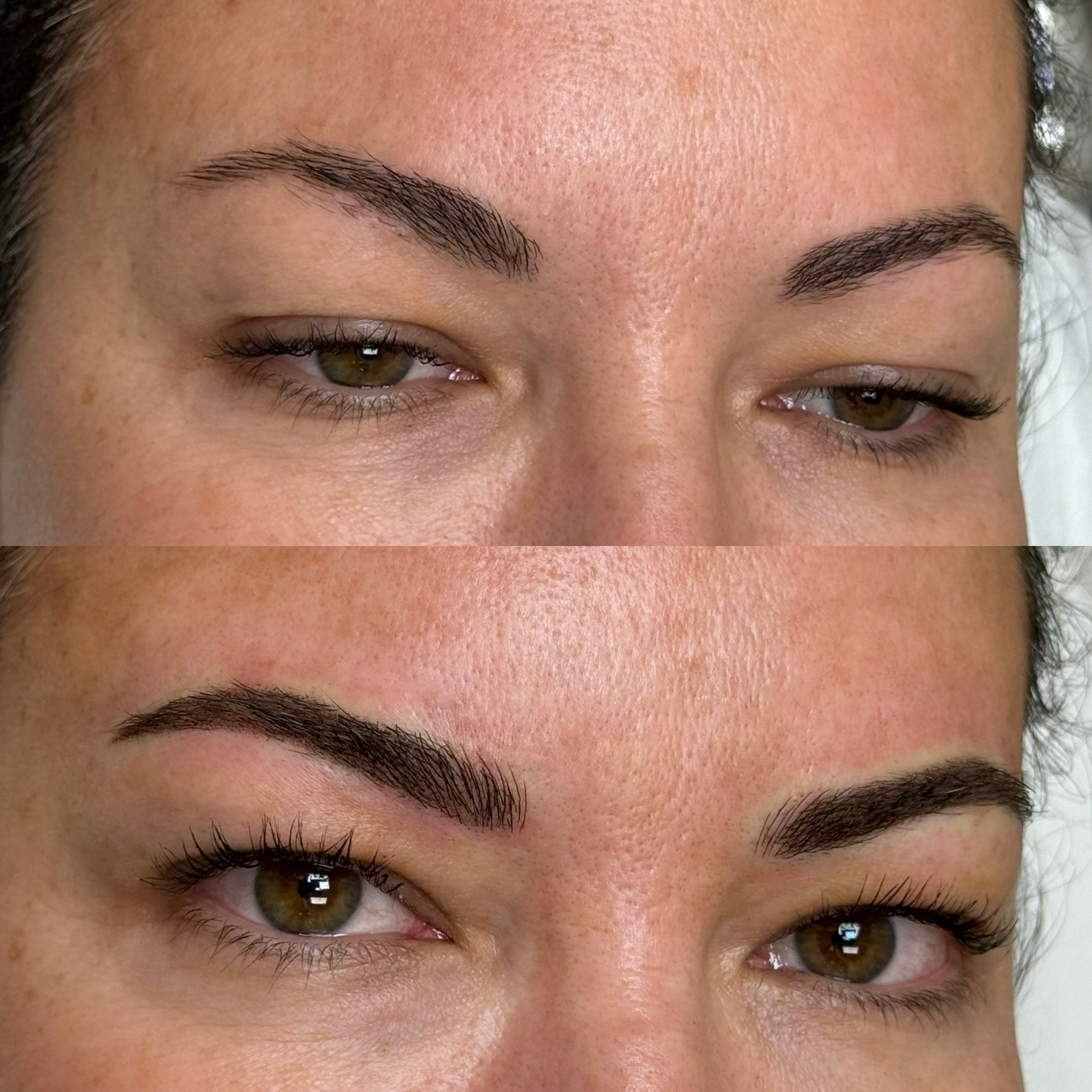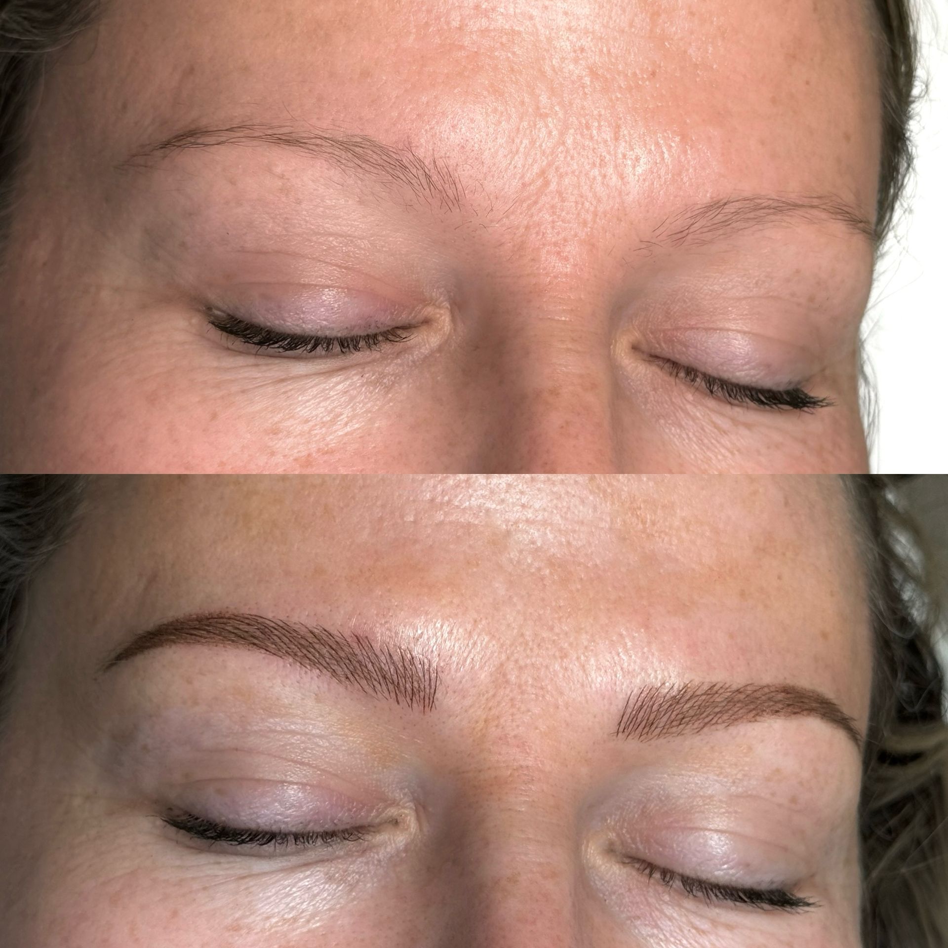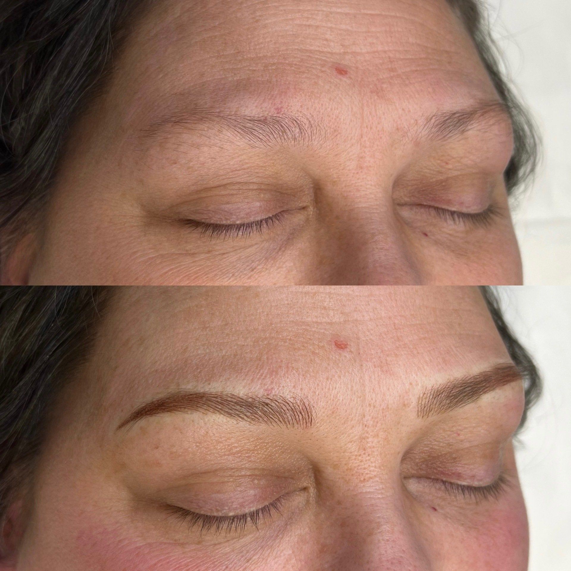 Combo Brows are a combination of microblading strokes and machine shading to give a natural, but defined eyebrow. This is best for clients with any skin type, or clients wanting natural microblading but have coarse hair and need shading to blend with natural hair or those with missing hair in patches. Typically hairstrokes are made mostly towards the fronts of the brows and shading is done through the middle/tails.