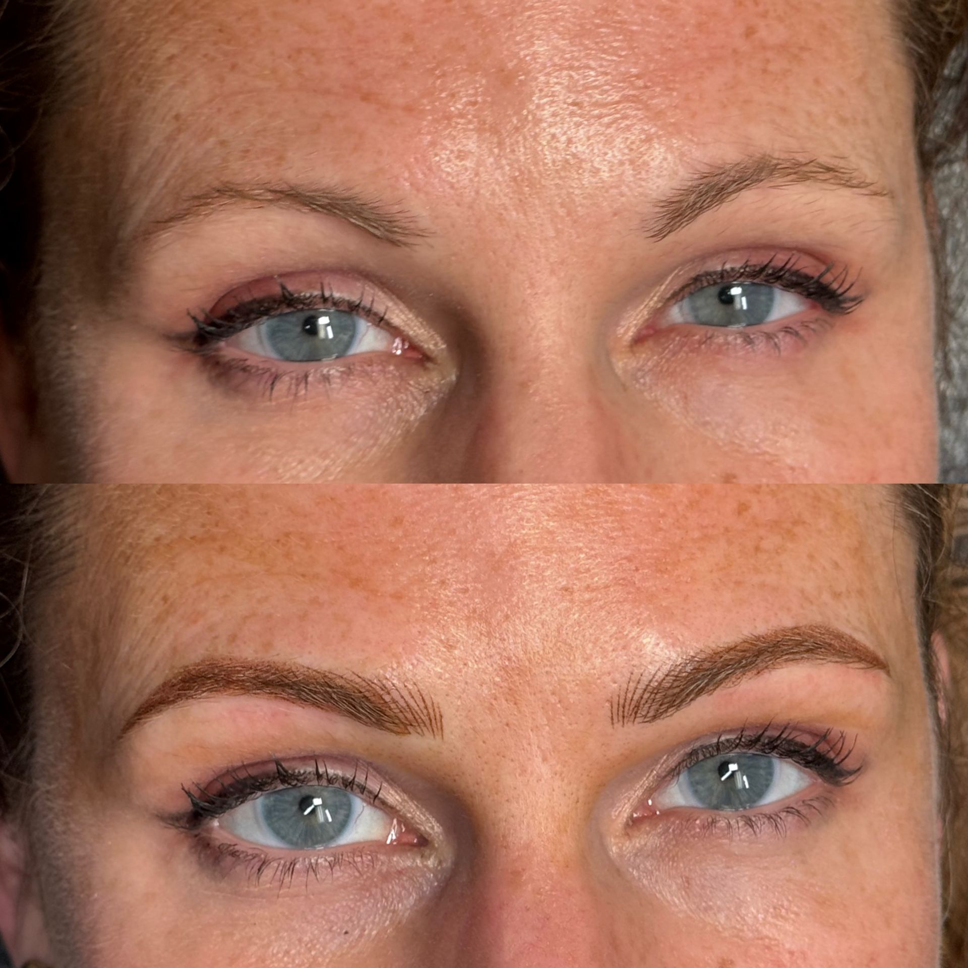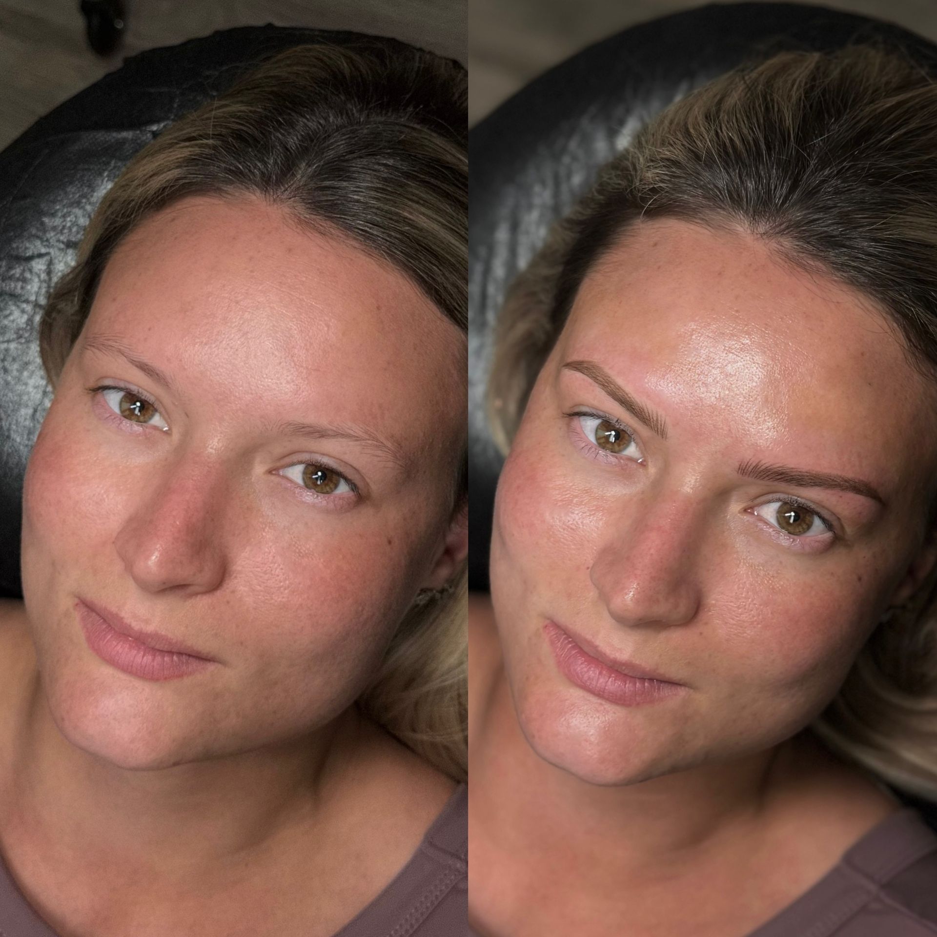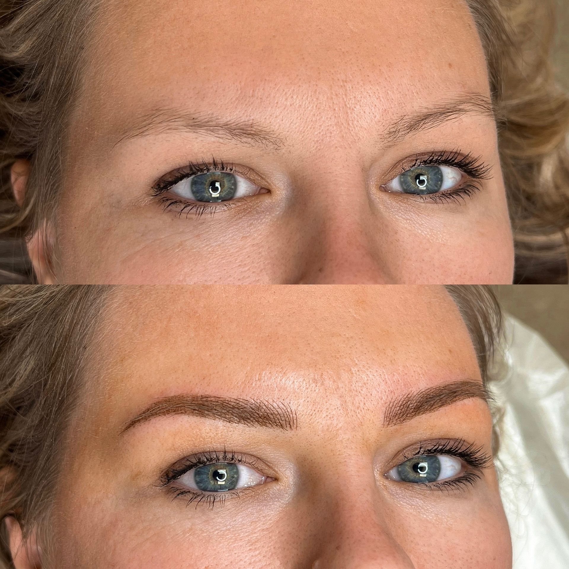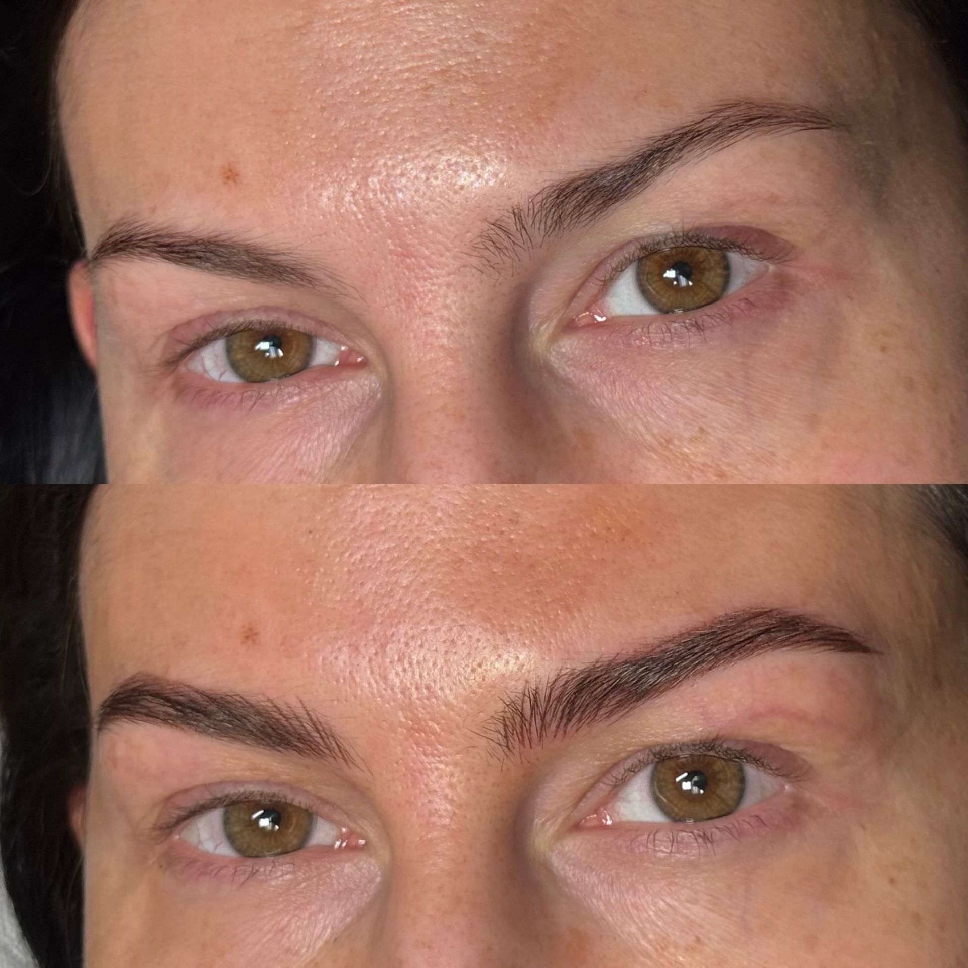 Combo Brows are a combination of microblading strokes and machine shading to give a natural, but defined eyebrow. This is best for clients with any skin type, or clients wanting natural microblading but have coarse hair and need shading to blend with natural hair or those with missing hair in patches. Typically hairstrokes are made mostly towards the fronts of the brows and shading is done through the middle/tails.