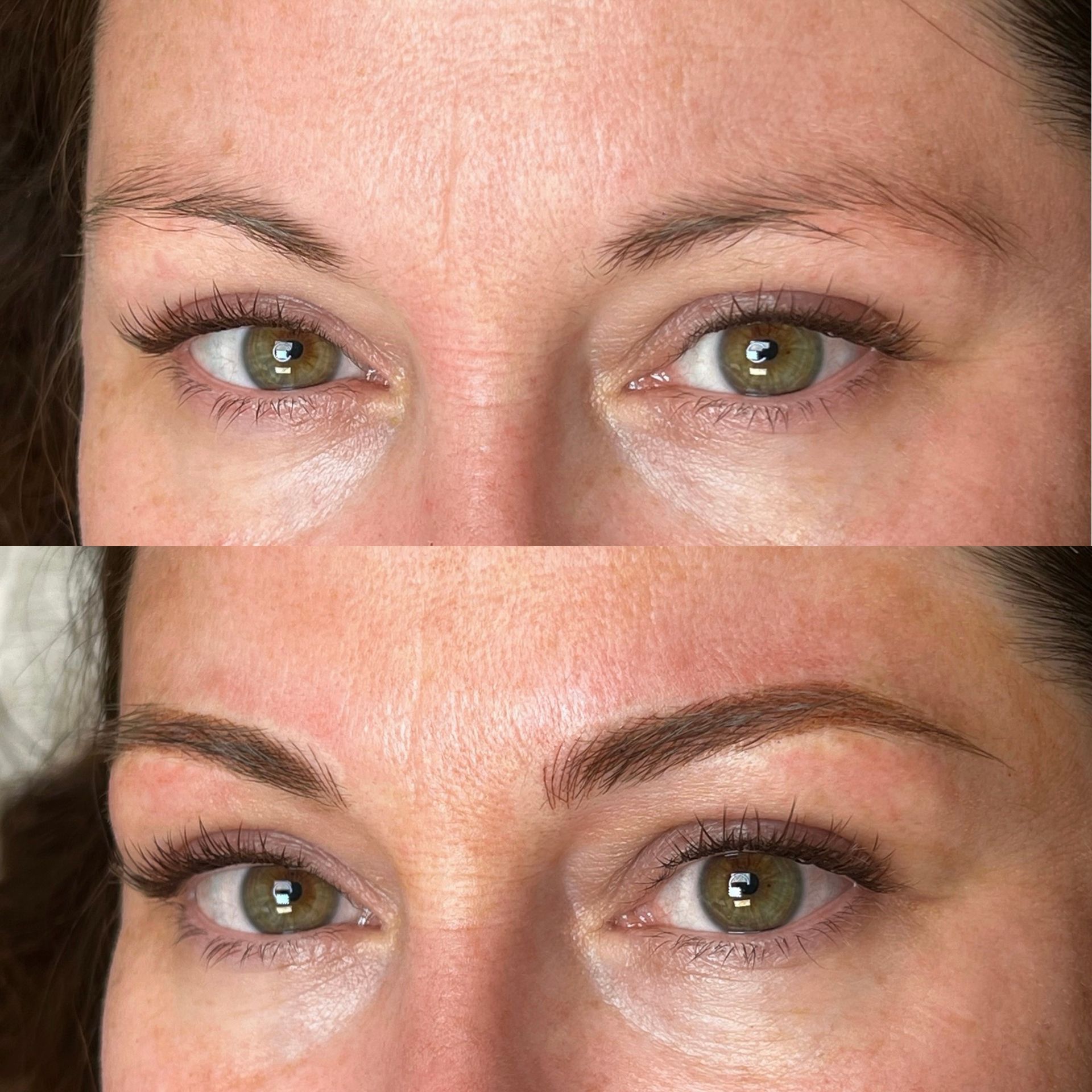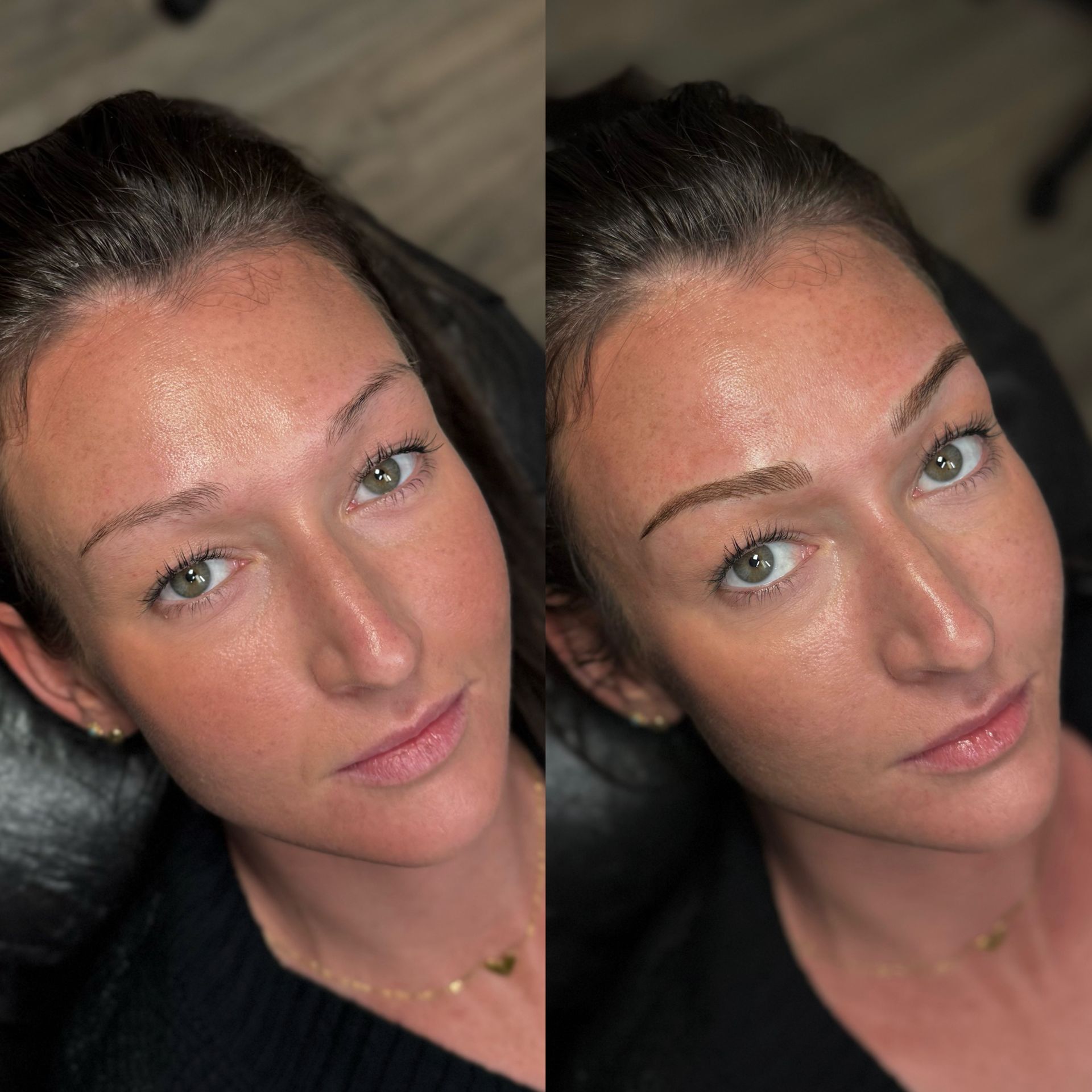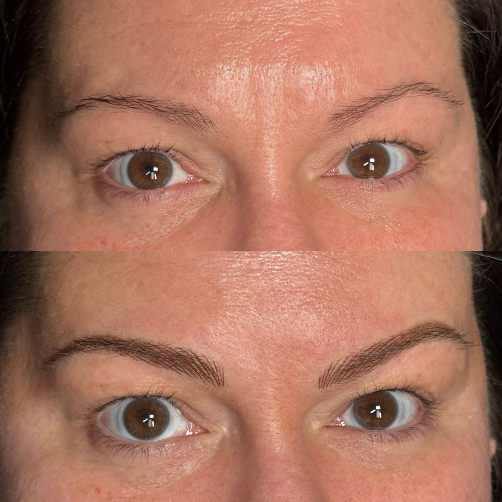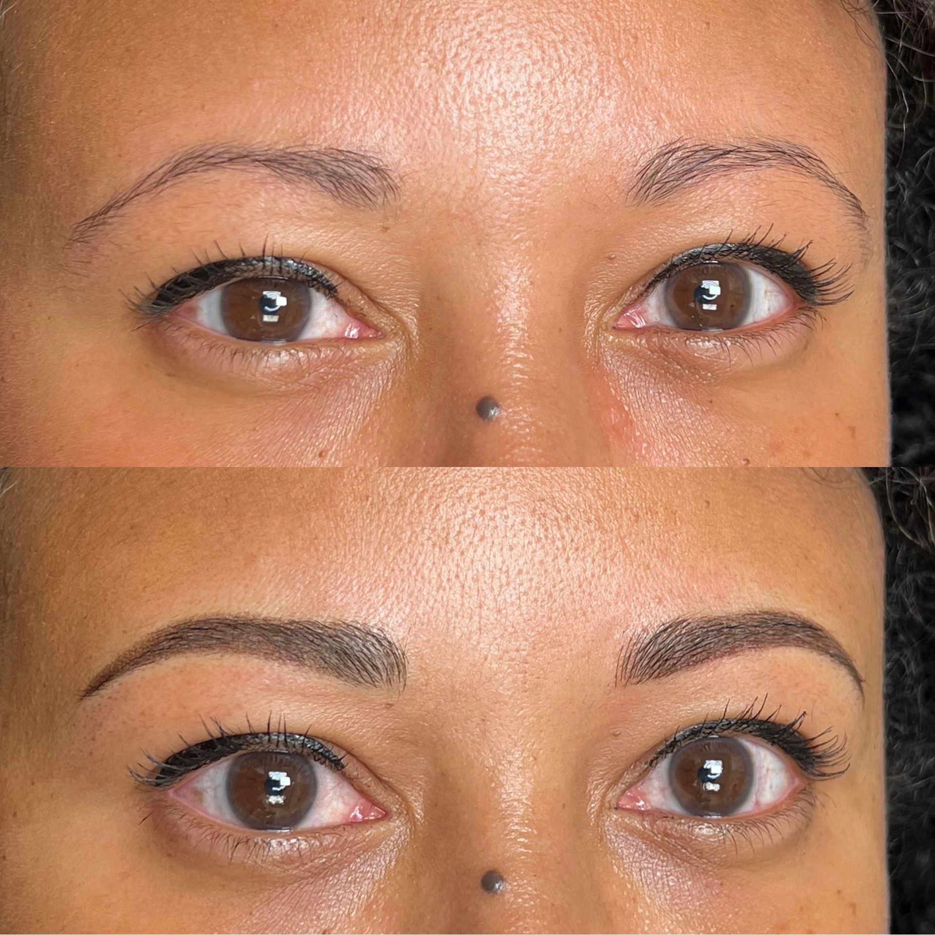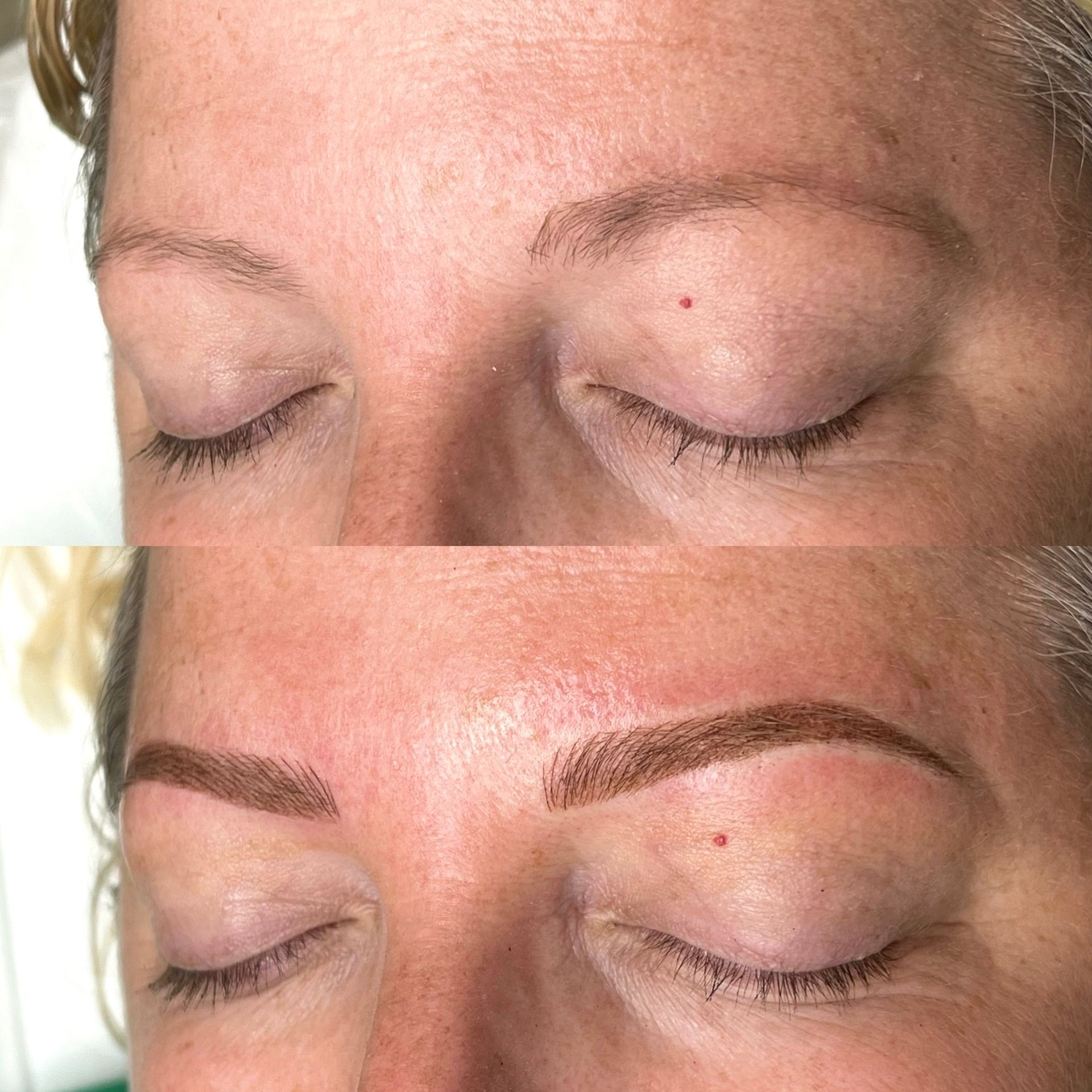 Combo Brows are a combination of microblading strokes and machine shading to give a natural, but defined eyebrow. This is best for clients with any skin type, or clients wanting natural microblading but have coarse hair and need shading to blend with natural hair or those with missing hair in patches. Typically hairstrokes are made mostly towards the fronts of the brows and shading is done through the middle/tails.