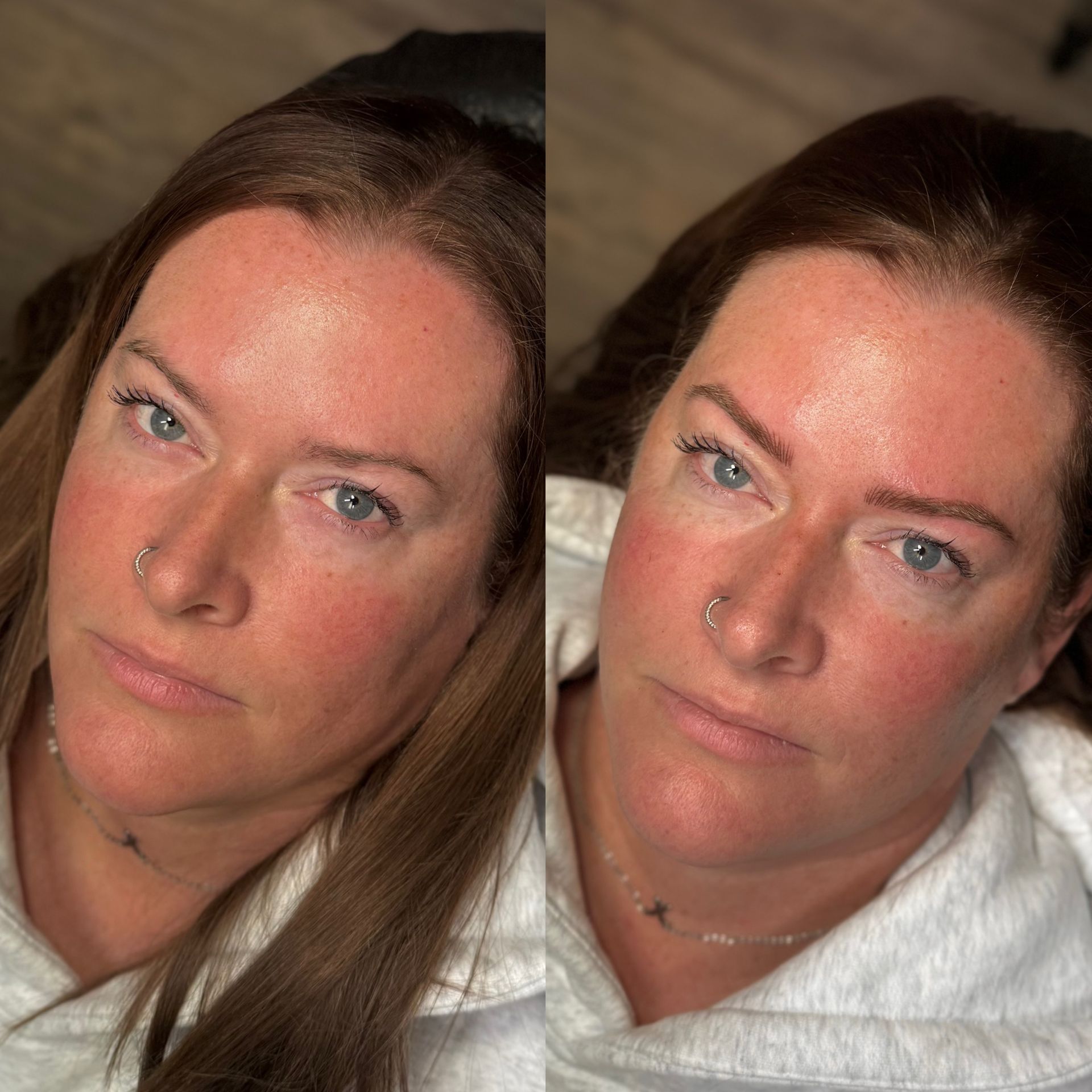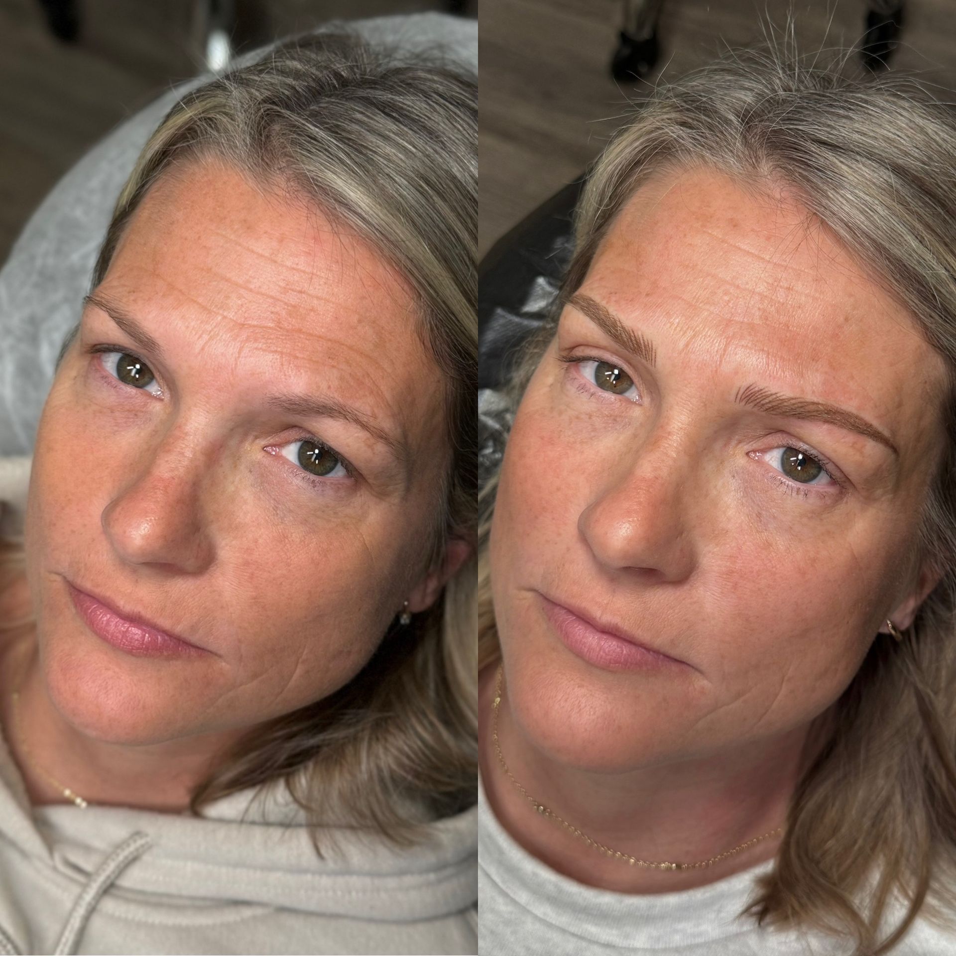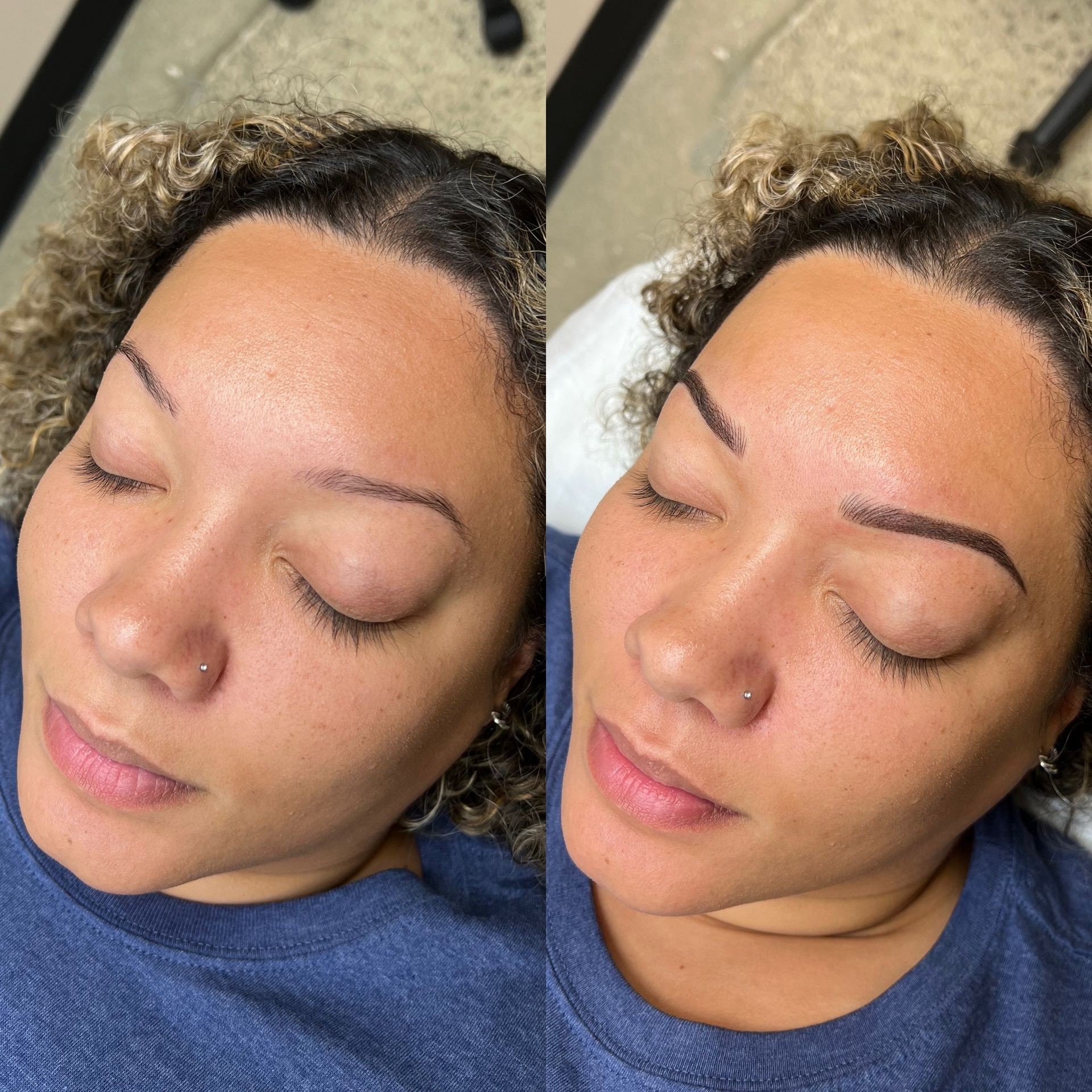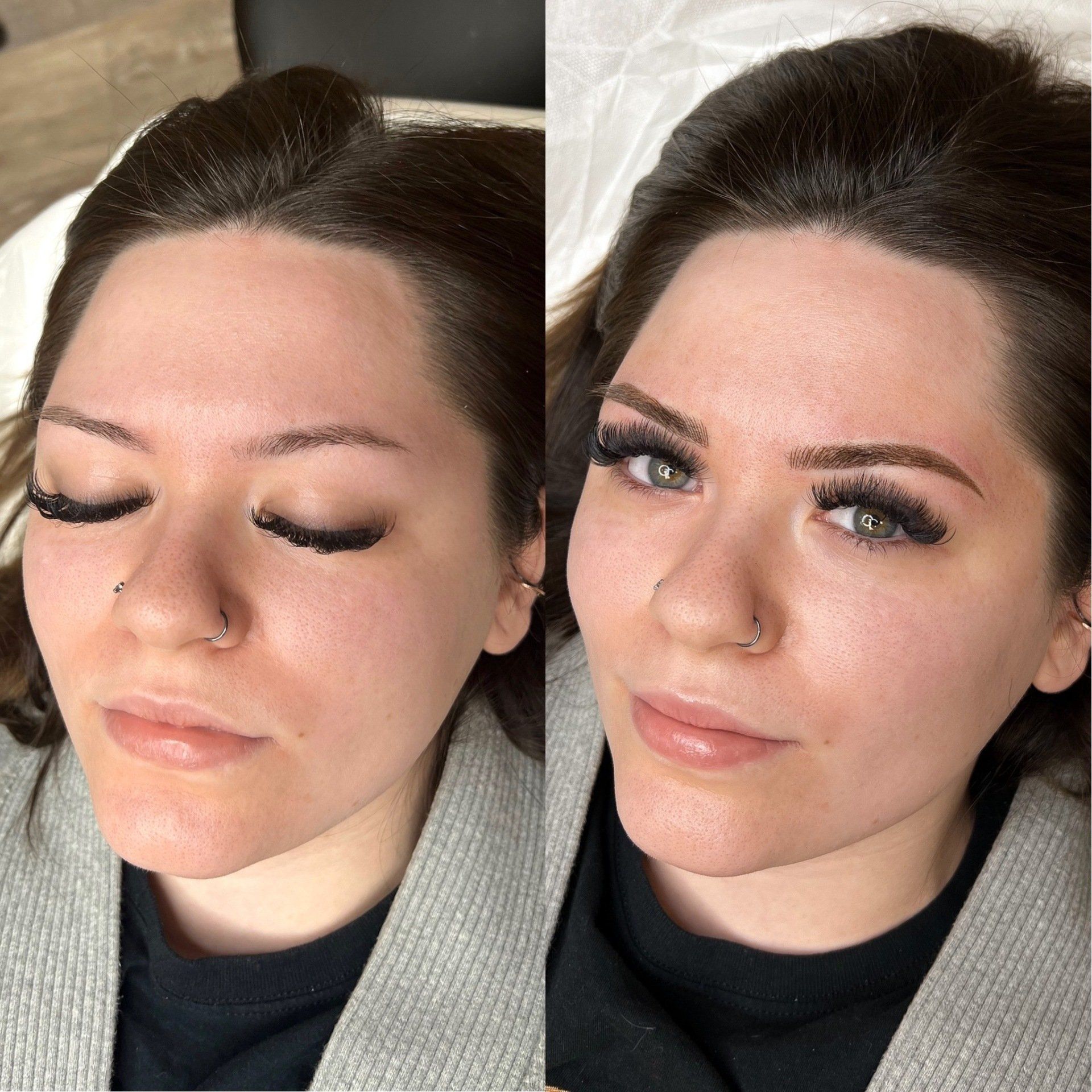 Combo Brows are a combination of microblading strokes and machine shading to give a natural, but defined eyebrow. This is best for clients with any skin type, or clients wanting natural microblading but have coarse hair and need shading to blend with natural hair or those with missing hair in patches. Typically hairstrokes are made mostly towards the fronts of the brows and shading is done through the middle/tails.